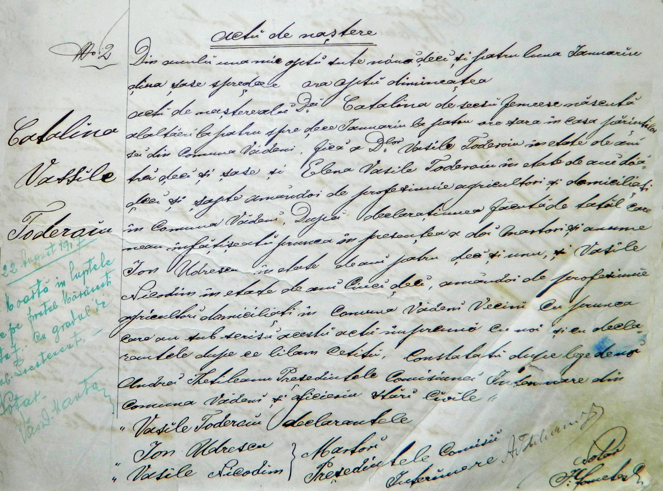 dscn7916 Publicat 5 ianuarie 2019 la 2313 × 1713 în Expoziția foto-documentară „Eroina poporului român, fiică a Vădenilor”: Copia „Actului de naștere” și o Ie care a aparținut Ecaterinei Teodoroiu Următorul →