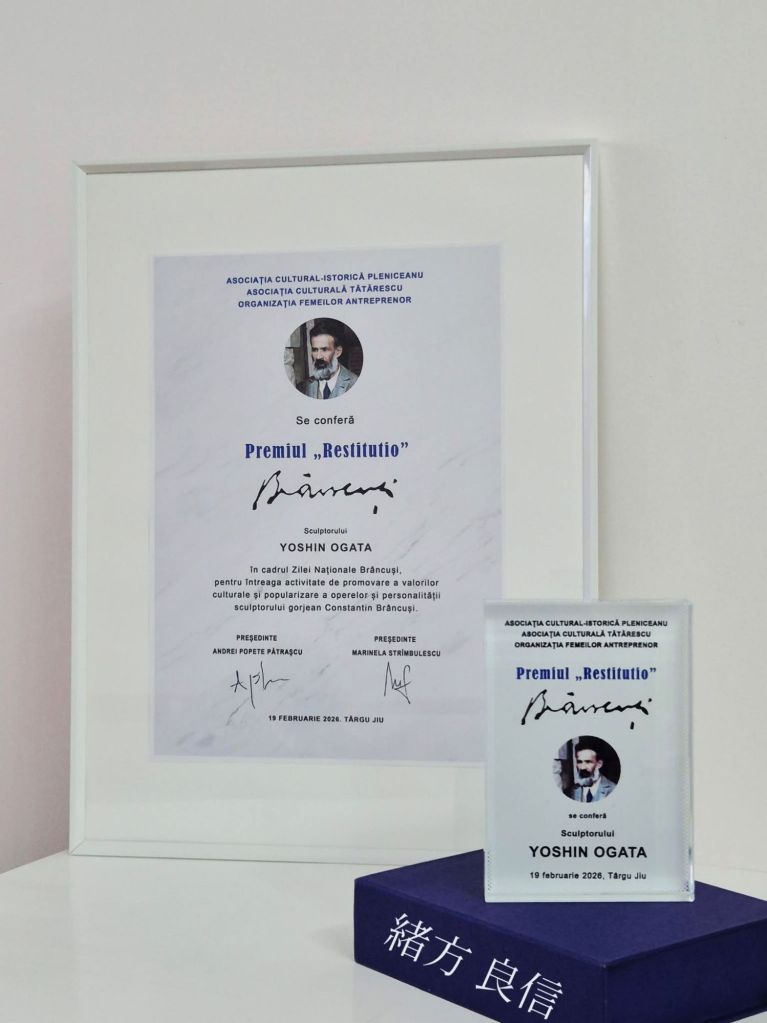 Asociația cultural-istorică „Dumitru și Maria Pleniceanu”, Asociația culturală „Tătărescu” și Patronatul Organizația Femeilor Antreprenor Gorj anunță acordarea Premiului Național „Restitutio. Brâncuși” – Ediția a VII-a (2026) sculptorului Yoshin Ogata, artist cu activitate internațională, a cărui operă se distinge prin rigoare a formei, esențializare și o preocupare constantă pentru dimensiunea spirituală a sculpturii.